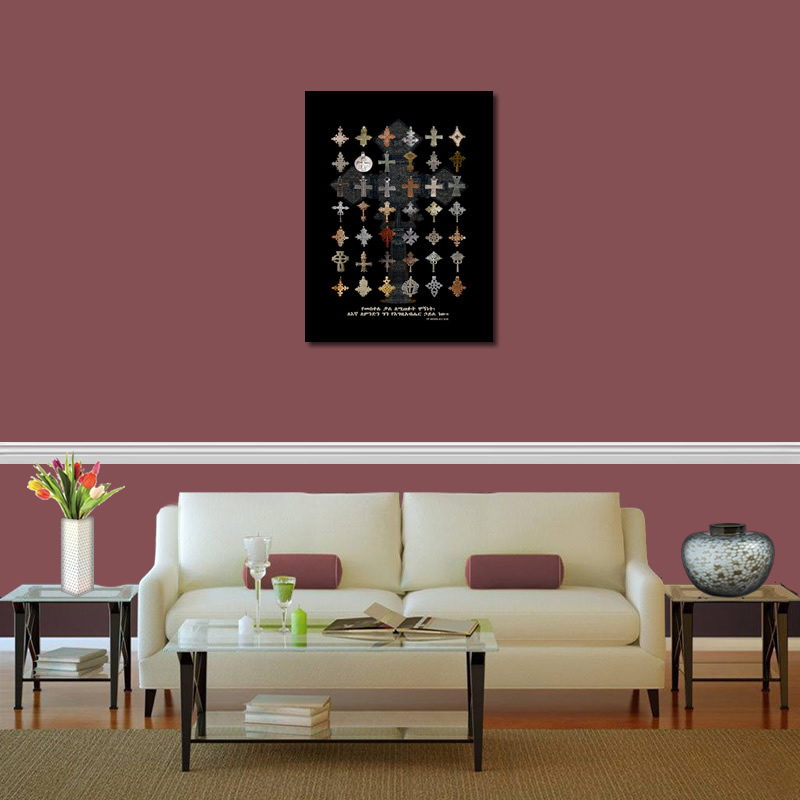 Create an inspirational and inviting home atmosphere with this beautiful collection of cross images from Ethiopia on Gallery Wrapped Canvas Art. A big cross is embedded behind the collection of crosses. The canvas measures 16 x 24 inches and an inch thick and features a metal hanger on the back.